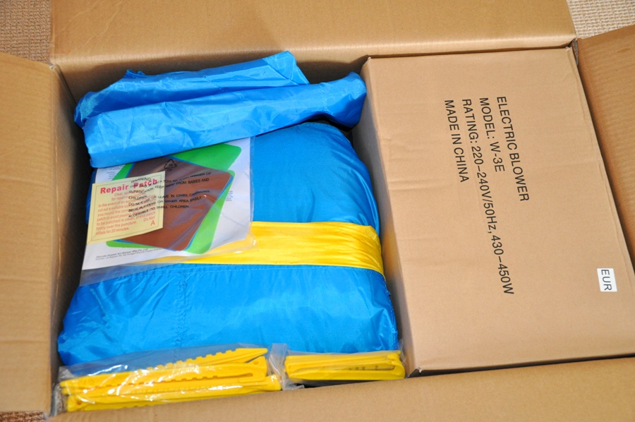 1x skákací atrakce 1x fukar 220V / 450W 5x kolík velký 4x kolík malý 1x přepravní taška 1x opravovací sada 1x český návod