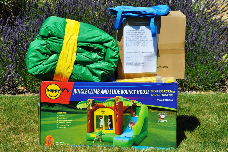 1x skákací atrakce 1x fukar 220V / 620-680W 7x kolík velký 4x kolík malý 1x přepravní taška 1x opravovací sada 1x český návod