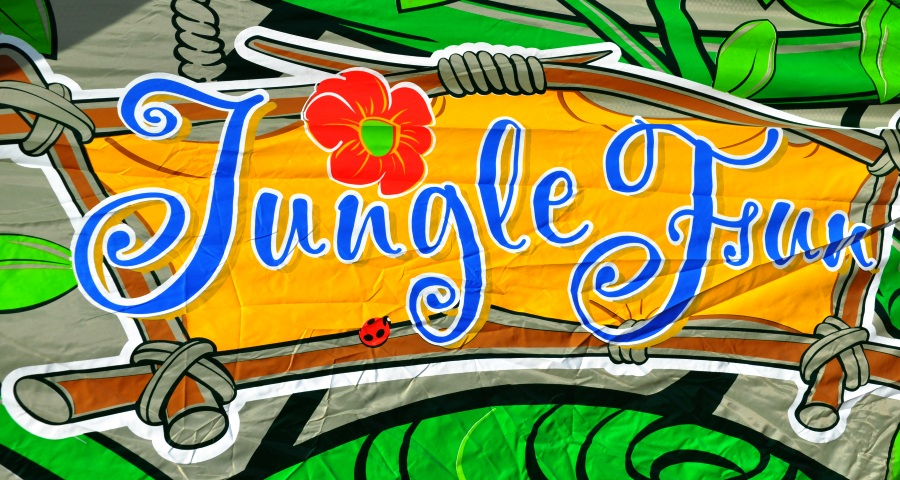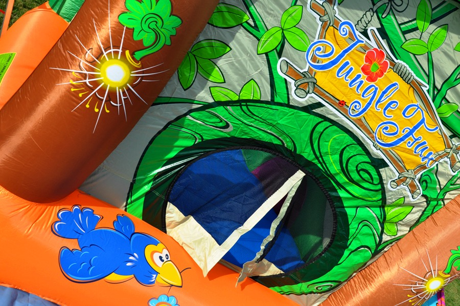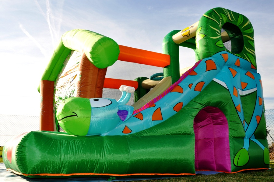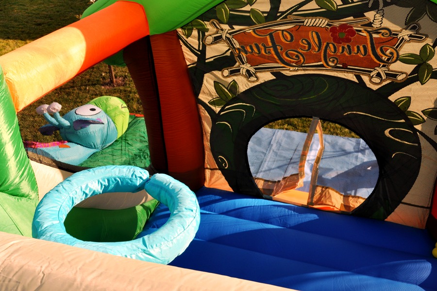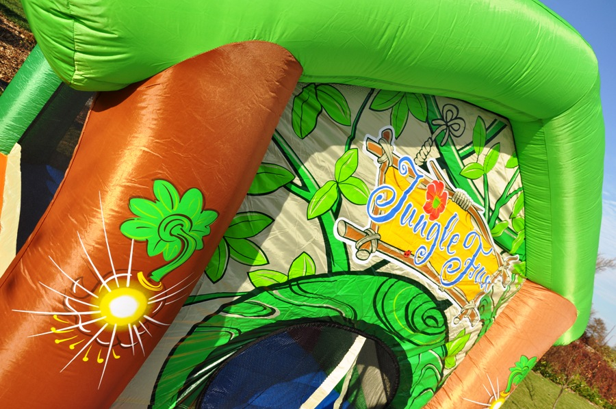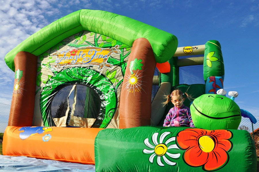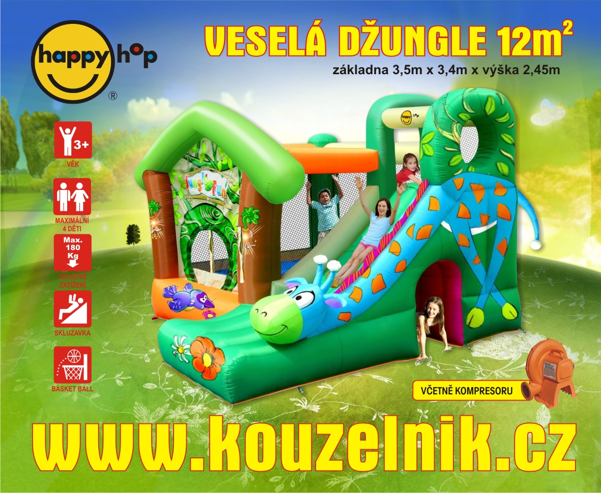 Veselá džungle kombinuje dvě pro děti nejoblíbenější aktivity skákací plochu se skluzavkou.