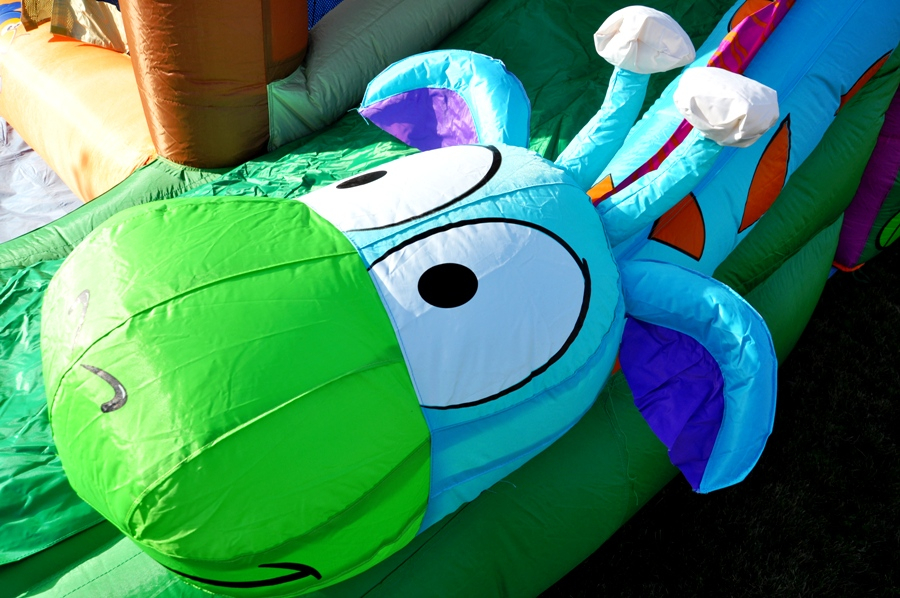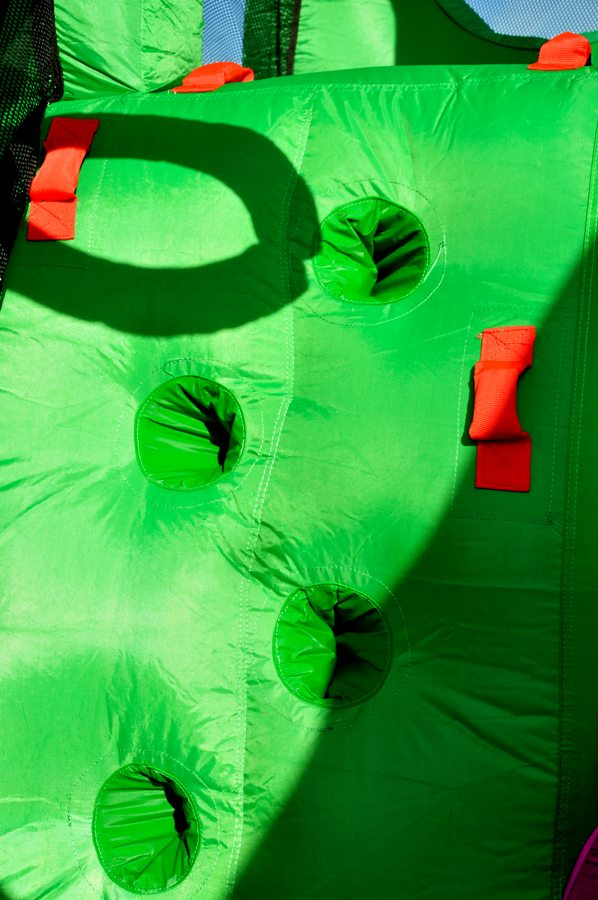 Atrakce Happy Hop mají oka v rozích a způsob jištění je stejný jko například u stanů.