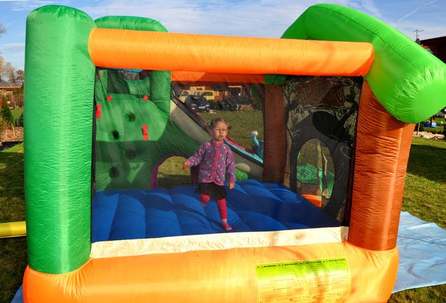Skákací plochu doplňují další doplňkové aktivity. Veselá džungle je aktivní centrum, které obsahuje také tunel na prolézání, lezeckou stěnu, skluzavku a basketbalový koš.