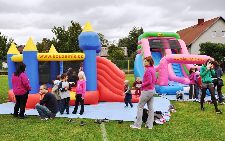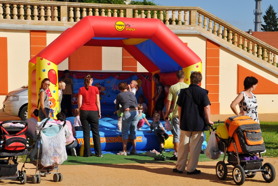 Skákací hrad se střechou.