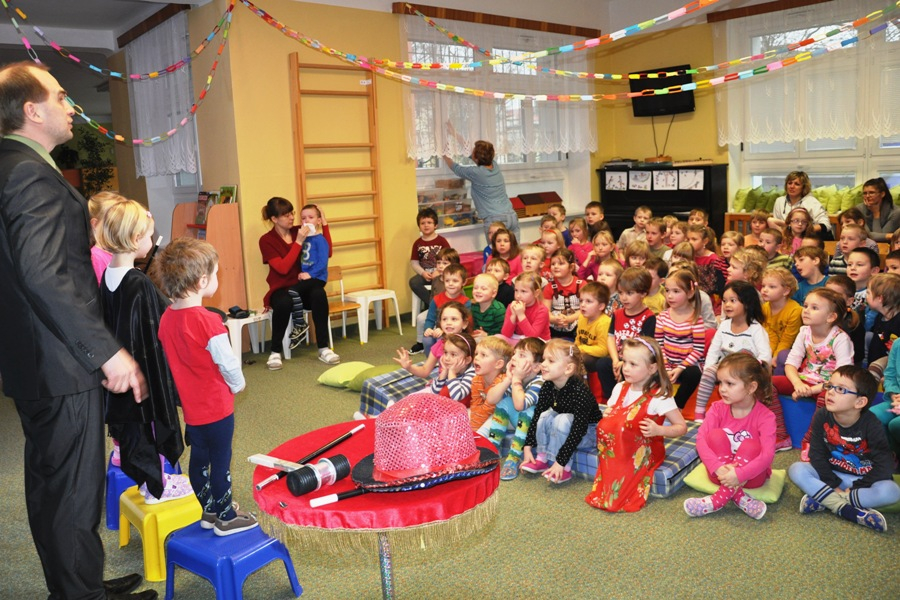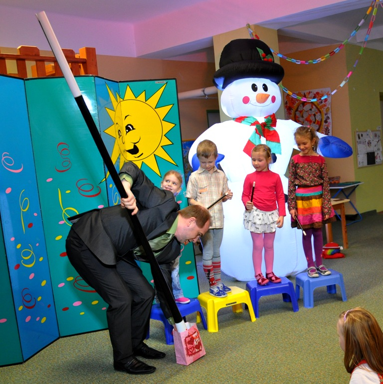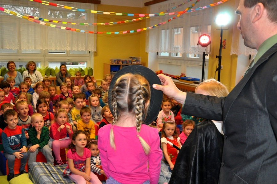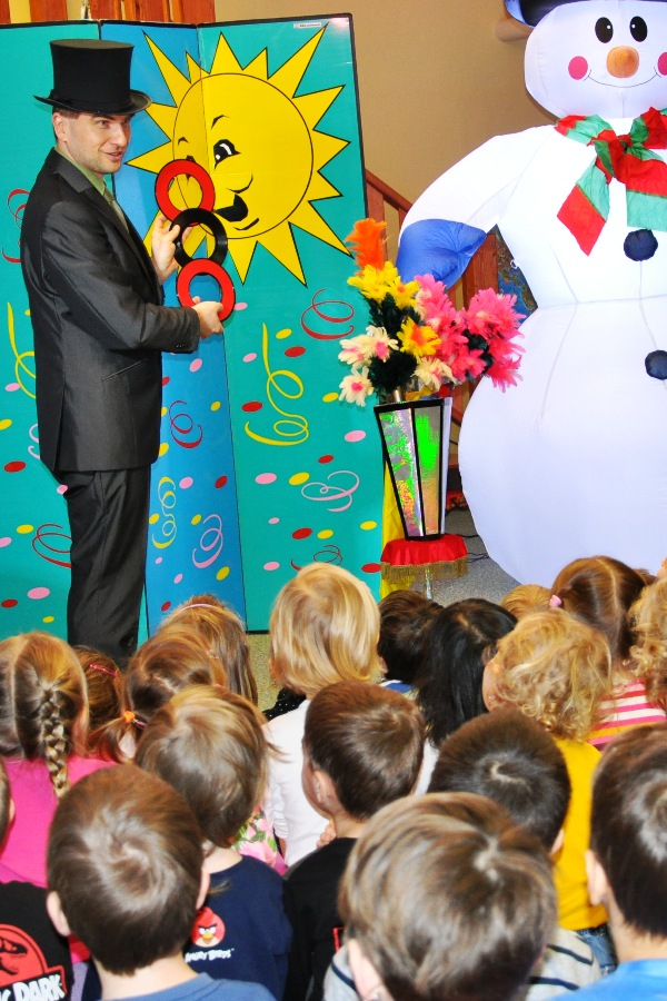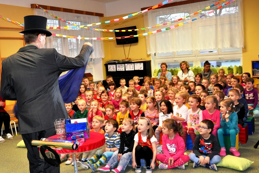 Děti se na začátku podívají na kouzelnický program s hudebním doprovodem.