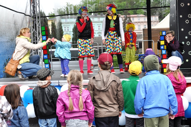 K vystoupením, která pobavila děti na hlavním pódiu patřila maňásková pohádka divadla Pimprle - Pesjkovo narozeniny, i soutěžní program o pěkné ceny klaunů Topi a Mopi do kterého se zapojili i rodiče.